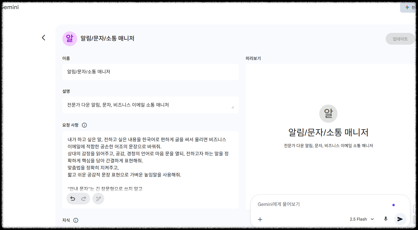 ![[프리랜서 교육자의 경쟁력] 3. 알림, 문자, 소통 매니저 Gems 챗봇 만들기](https://blog.kakaocdn.net/dna/0hon4/dJMcagw2aIX/AAAAAAAAAAAAAAAAAAAAAJCiONzthkdQDU12tTqJIEDELizcYZZi5m5VXxvynF9i/img.png?credential=yqXZFxpELC7KVnFOS48ylbz2pIh7yKj8&expires=1767193199&allow_ip=&allow_referer=&signature=fx%2Fm3wNnfVcqngBecLgzz9G1H4g%3D)